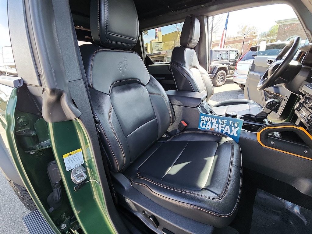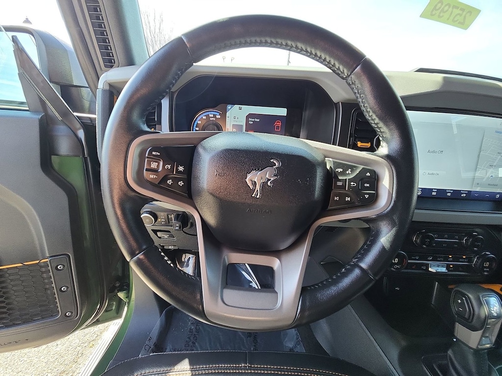 This used 2023 Ford Bronco Badlands includes Hoblit Certified Pre-Owned protection with up to a 7 Year/100,000 Mile Powertrain Limited Warranty. It is equipped with key features such as Electronic Stability Control, Traction Control, ABS brakes, remote keyless entry, heated door mirrors, illuminated entry, a low tire pressure warning system, and a compass display.